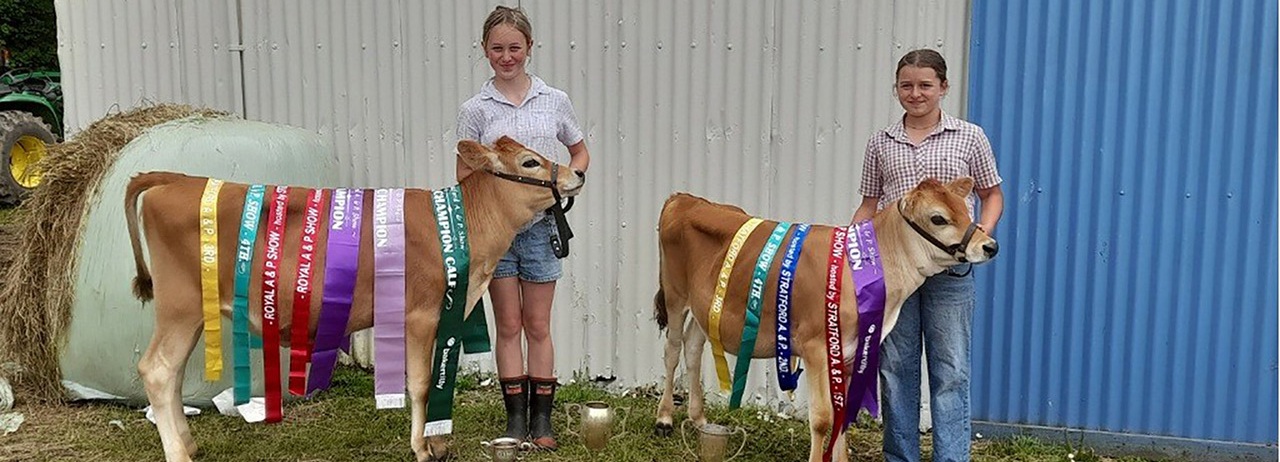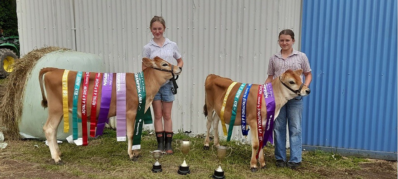 RESULTS: Stratford AP and I Royal Show: Ava and Sassy: Grand champion calf, champion dairy type calf, reserve champion calf, 1st care and rearing, 1st dairy type, 3rd leading, 4th group leading. Karli Westerby and Fern: 1st leading calf, champion leader, 4th group leading, 3rd dairy type, 2nd care and rearing.