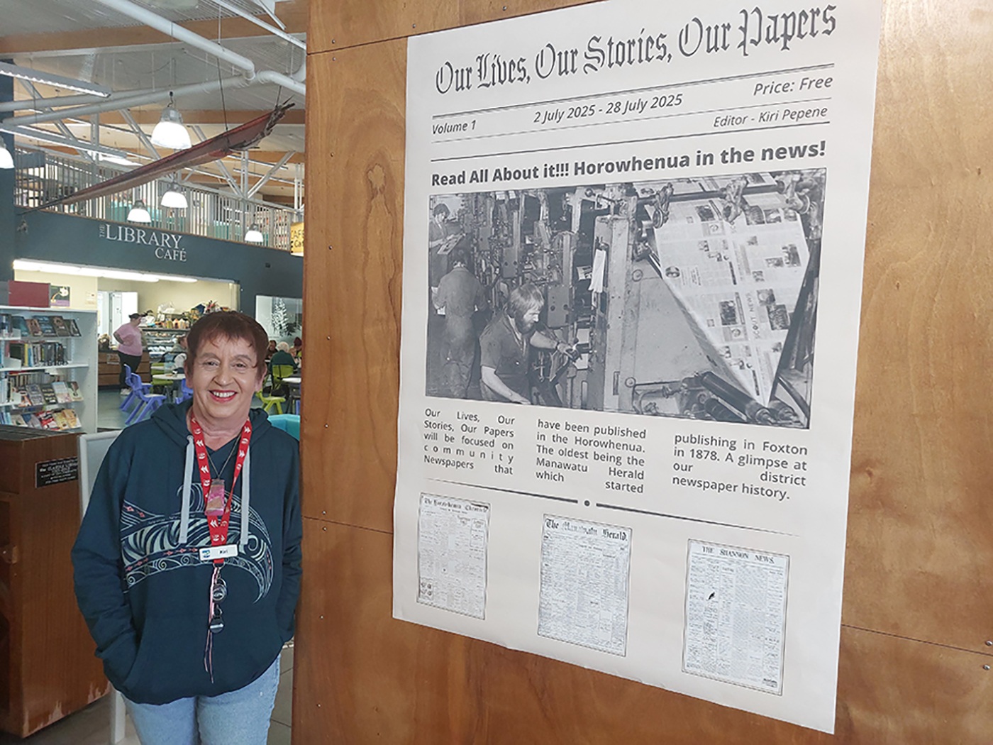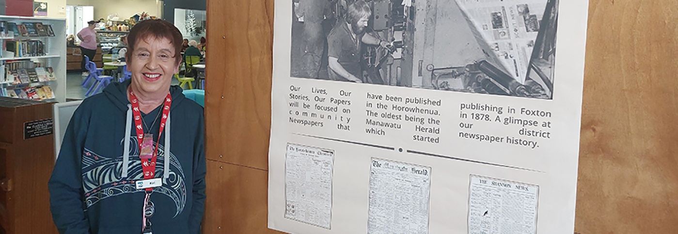 Horowhenua Libraries’ Kiri Pepene has put together a display called “Our lives, our stories, our papers”, which shows the history of newspapers in Horowhenua.