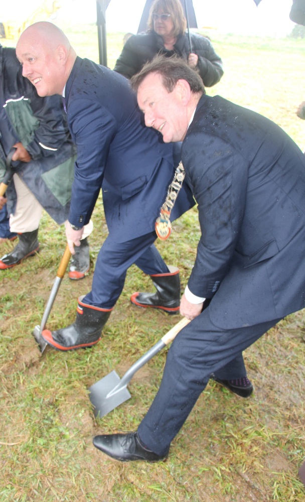 Prime Minister Christopher Luxon and Horowhenua Mayor Bernie Wanden help turn the first sods for the Horowhenua expressway. Photo Janine Baalbergen