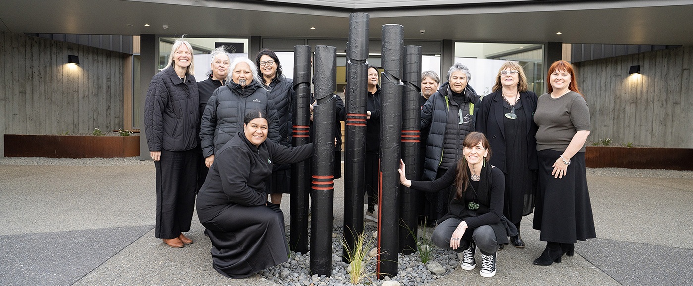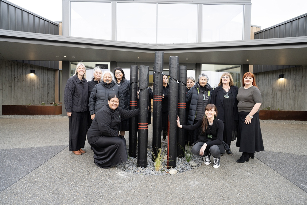 Designer Sian Montgomery-Neutze said the foyer had been created to be the heart; a centre point. The pou (pillars) outside the entrance are designed so people feel guided and protected when going in and out of the building.
